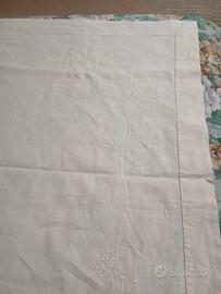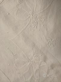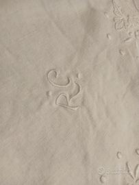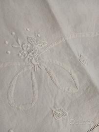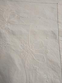 Lenzuolo mistolino. Vintage. Orlo a giorno ricamo a mano. Cm 240 x280 lettere iniziali del nome ricamate a manoElegante