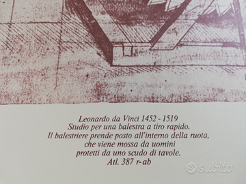 Due stampe di Leonardo da Vinci raffiguranti la balestra. Misure cm 33x41