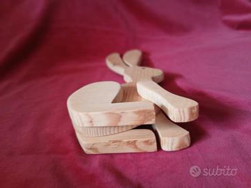 Scultura artigianale in legno abete realizzata a mano in unico esemplare. Dimensioni: H cm 34, L 14, P 5.