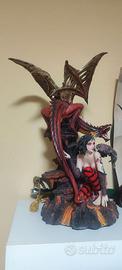 Les Alpes Statua dettagliata di una fata gotica con un drago rosso. - Design fantasy con elementi gotici. - Drago rosso con ali e squame. - Base rocciosa con dettagli di lava. - ci sono piccoli dettagli mancanti.