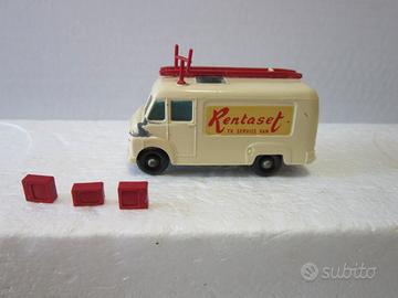 lotto di 6 mezzi in metallo,marca Lesney Mercury e Husky,il camioncino TV ha i 3 piccoli televisori di accessorio ed è completo di antenna e scala sul tetto,il carro BP ha l'idrante antincendio,il carrello trasporto animali è completo di 4 mucche,tutto senza scatola.