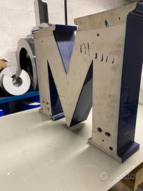 Lettera M ex insegna blu in plex forato