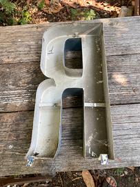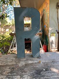 Lettera R ex insegna in metallo blu alta 35 larga 15 profonda 5