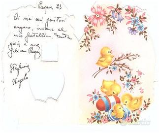 Vendo Letterina di Buona Pasqua apribile del 1973, 17x 10 cm., come da foto, a Euro 2,00 + spese di spedizione.