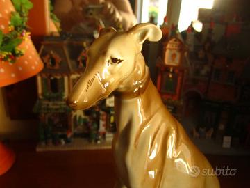 LEVRIERO statua porcellana ZSOLNAY ART DECO, dipinto a mano, di design Markup Bela (1873-1945) anno 1930