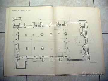In foglio grande (cm 50x34), cartella composta da un fascicolo di 4 pagine e 12 Tavole tra piante, sezioni, prospetti, particolari etc. della Basilica di San Nicola in Bari. E’ il fascicolo VII de: “I Monumenti Italiani” – rilievi raccolti a cura della Reale Accademia d’Italia, Classe delle Arti, il cui consiglio direttivo era presieduto da Marcello Piacentini. Brossura editoriale a cartella con ali, Titolo al primo piatto. Ottima conservazione.