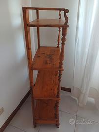 Piccola Libreria mensoliera in legno ,vecchia .Tarli eliminati ma in alcuni punti i segni del loro passaggio sono evidenti . Non è un mobile da carico l'età l'ha resa fragile ,da restaurare. misure cm 60x cm 29x h cm 126