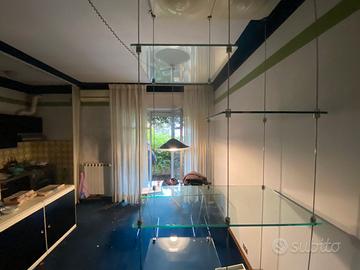 La libreria è in buone condizioni generali, le plafoniere sono in perfetto stato, alcuni vetri invece presentano piccoli difetti e sbeccature.