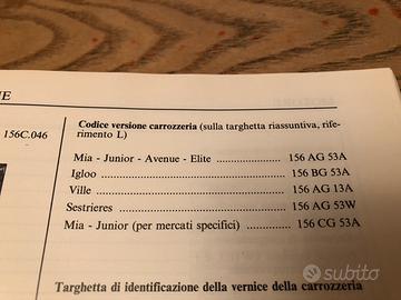 - Libretto (datato 11/1993) relativo alla "3 serie" (produzione 1992/1995) cilindrata 1108 (KW37) per le versioni Avenue-Elite-Sestrieres-Mia-Junior-Ville-Igloo