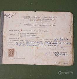 Carta di circolazione del 1966 di una MV Agusta mod. Extra America