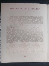 *FILATELIA SPECIALIZZATA* *STORIA POSTALE* ******************** LIBRETTO FILATELICO (CARTONCINO) ***************************************** ( FRONTESPIZIO ) : PARIS CONFERENCE EUROPEENNE DES ADMINISTRATIONS DES POSTES et des TELECOMMUNICATIONS 19 au 29 OCTOBRE 1960 ******************************* *ALL' INTERNO (1^Pagina ) : ***************************** MADAME DE STAEL (1766 - 1817) (Scrittrice / Saggista / Intellettuale Svizzera di Lingua Francese Biografia in Testo Francese) *2^ PAGINA INTERNA : ************************ IN ALTO : PROVA DI LUSSO (SU FOGLIETTO) FRANCOBOLLO 0,30 Madame de Stael (REPUBLIQUE FRANCAISE) ***************************** IN BASSO : NUMERO TRE FRANCOBOLLI 0,30 Madame de Stael (REPUBLIQUE FRANCAISE) DI CUI DUE ANNULLATI CON ANNULLO SPECIALE (Paris , 22 Oct. 1960) **************************** *Gravure de Charles Mazelin* Prix de Rome ******************************** *Servizio di Spedizione Tutto Subito