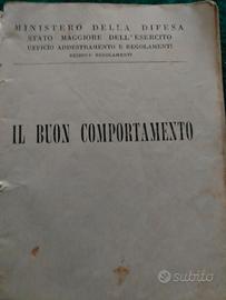LIBRETTO " IL BUON COMPORTAMENTO" PER MILITARI A CURA DEL MINISTERO DELLA DIFESA. UNA SORTA DI GALATEO, DA COLLEZIONE, DEL 1952. SULLA COPERTINA È PRESENTE IL NOME DEL MILITARE PROPRIETARIO DI QUESTO LIBRETTO. OGGETTO MILITARIA PER COLLEZIONISTI
