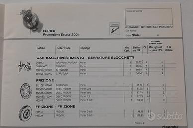 libretto Piaggio ricambi originali per Porter anno 2004 "Promozione Estate" in buono stato INTROVABILE