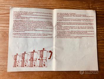 Raro libretto pubblicitario distribuito in omaggio con l'acquisto di una moka Bialetti, originale di fine anni '60.