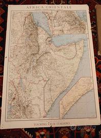 In vendita importante documento storico originale del 1936, pubblicato dalla prestigiosa rivista francese L'Illustration, dedicato alla Guerra d'Etiopia (1935-1936). Interno eccellente, rilegatura esterna da restaurare Il lotto comprende: Volume In-Folio "La Guerre Italo-Éthiopienne" - Raccolta completa dei reportage dell'epoca (dicembre 1934 - giugno 1936). L'interno è in ottime condizioni, con pagine pulite e splendide tavole a colori. Dimensioni Libro: 38 x 29 cm. Grande Mappa Originale Touring Club Italiano (TCI) - Africa Orientale (Eritrea, Abissinia, Somalia). Le pieghe sono integre e la carta è solida, senza strappi profondi. Presenta lievi fioriture (macchie del tempo) sul retro e piccoli fori che non ne intaccano la bellezza. Dimensioni Mappa (aperta): 82,5 x 60,5 cm. Condizioni: Legatura originale da restaurare (copertina e ultima pagine staccate dal blocco e dorso con mancanze), ma apparato iconografico e cartografico interno perfettamente conservato. #militaria #storia #collezionismo #etiopia #fascismo #abissinia #cartografia #touringclub #libriantichi