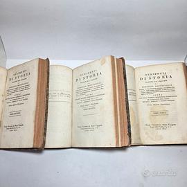 TITOLO: Rudimenti Di Storia Tradotti Dal Francese da Domenico Martuscelli Giudice Criminale Giubilato, Accademico Pontaniano, dell'Instituto Cosentino e della Società Economica, Socio Corrispondente delle Accademie di Marsiglia e di Livorno. Opera Con Real Decreto Dichiarata Elementare Per l'istruzione degli Alunni ne' Licei, Seminarj e Collegj Militari. Prima edizione Napoletana. TOMO PRIMO [-SESTO] Presso Giovanni De Bonis 1817 Misure:Totali: 20.5 x 13.3 x 13 cm Ca. Pagine: XX, 248 ; 295 ; 350 ; 279 ; 304 ; 328. Tre volumi contenenti sei tomi. Opera Completa. Coperta in mezza pelle con titoli entro tassello, numerazione e fregi in oro al dorso. Coperte con lievi abrasioni sparse. Interno in buono stato con pagine lievemente brunite. Sguardie intatte. libri antichi libro antico libri rari libri storici libri da collezione libro da collezione antiquariato libri antiquariato collezionismo librario arte antica cultura antica vendita libri antichi antique books ancient book rare books historical books collectible books antique book sales book antiquities ancient art antiques book collection livres anciens livre ancien livres rares livres historiques livres de collection antiquités livres vente livres anciens art ancien libros antiguos libro antiguo libros raros libros históricos libros de colección antigüedades libros venta libros antiguos arte antiguo alte Bücher altes Buch seltene Bücher historische Bücher Sammlerbücher Buchantiquariat Antike Bücher book books collection art 400 500 600 700 800 900 XVII XVI XV XVIII XIX XX