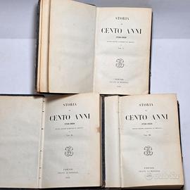 TITOLO: Storia di Cento Anni [1750-1850] Seconda Edizione Accresciuta ed Emendata. Vol. I [-III] - Firenze Felice Le Monnier 1852. Tre tomi Dimensioni:18 x 12.1 x 9.7 cm Ca. Totali. Pagine: I - 1 f.b + (4) 525 (3) + 1f.b. ; II - 1 f.b. + (4) 595 (1) + 1 f.b ; III - 1 f.b + (4) 626 + 1f.b. COMPLETI. Coperta in mezza pelle marrone con titolo e numerazione in oro a dorso, nervi in risalto. Piatti in carta con motivi floreali blu. Interno in ottimo stato di conservazione con pagine lievemente brunite. Coperte con diverse abrasioni, più accentuate ai lati. libri antichi libro antico libri rari libri storici libri da collezione libro da collezione antiquariato libri antiquariato collezionismo librario arte antica cultura antica vendita libri antichi antique books ancient book rare books historical books collectible books antique book sales book antiquities ancient art antiques book collection livres anciens livre ancien livres rares livres historiques livres de collection antiquités livres vente livres anciens art ancien libros antiguos libro antiguo libros raros libros históricos libros de colección antigüedades libros venta libros antiguos arte antiguo alte Bücher altes Buch seltene Bücher historische Bücher Sammlerbücher Buchantiquariat Antike Bücher book books collection art 400 500 600 700 800 900 XVII XVI XV XVIII XIX XX