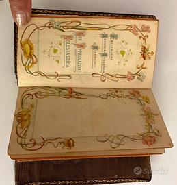G. MAURI & C. EDITORI, MILANO - RILEGATO - COPERTINA IN PELLE - TUTTE LE PAGINE SONO ORNATE CON RICHE CORNICI FLOREALI LIBERTY IN CROMOLITO - PRESENTI ANCHE DIVERSE IMMAGINI - TITOLETTI IN ROSSO - IL CONTORNO DELLE PAGINE E' DORATO (SI NOTA LO SPESSORE DORATO A VOLUME CHIUSO) - CONDIZIONI BUONE - MANCA L'ULTIMA PAGINA