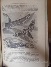 Volume originale del 1877 della celebre enciclopedia naturalistica Brehms Thierleben, opera fondamentale di Alfred Edmund Brehm.