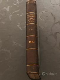 Libro antico di Statistica Giudiziaria e Affari Penali per l’anno 1880 stampato dalla tipografia di E.Sinimberghi a Roma nel 1883. Rilegatura in ottime condizioni . Pag. 527
