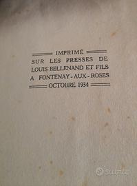 Edizione d'epoca del romanzo "Capitaine Conan" di Roger Vercel vincitore del prestigioso Prix Goncourt nel 1934, editore Albin Michel (Parigi), anno di stampa Ottobre 1934 (Imprime' per Louis Bellenand et Fils), in lingua francese. Si tratta di un'opera della letteratura francese del primo novecento ambientata nei Balcani alla fine della Grande Guerra. Rilegatura mezza pelle marrone con piatti marmorizzati e titolo in oro sul dorso. Il libro è in buone condizioni vissute, coerenti con i suoi 90 anni di età, rilegatura solida, con segni di usura e sfregamento sui bordi e sul dorso. Pagine complete e perfettamente leggibili, presenti segni di fioritura (macchie brune del tempo) e ingiallimento naturale della carta. Il volume riporta l'indicazione delle tirature limitate di pregio (Alfa Mousse ecc..) rendendolo un pezzo molto interessante per i bibliofili.