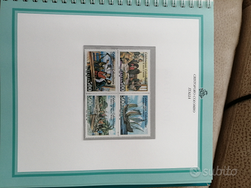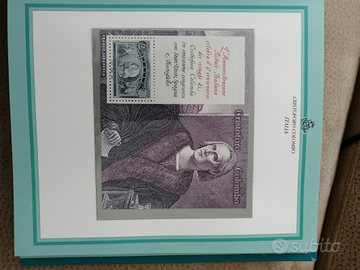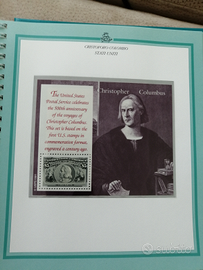 Vendo libro contenente tutte le emissioni per le celebrazioni Colombiadi. 15 francobolli italiani, 4 americani, 1 biglietto postale italiano, 2 cartoline postali italiane, 1 aerogramma italiano, 6 BF italiani, 6 portoghesi e 6 americani.