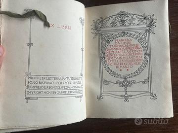 libro antico autentico, rarità bibliografica Gabriele D'Annunzio - Francesca da Rimini - Milano, Treves 1902. pagine intonse, in perfette condizioni. stampata in nero e rosso su carta vergata, con testatine, finalini, cornici e belle vignette xilografiche.