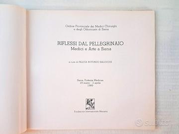 Libro "Riflessi dal Pellegrinaio - Medici e Arte a Siena" Felicia Rotundo Balocchi, 1989. Vintage. Catalogo della mostra di opere artistiche di medici (dottori). Con opere di Ferdinando Cerruto, Francesco Cetta, Manlio Dettori, Raffaele Leone, Giovanni Lillo, Sergio Mondillo, Carlo Sassi, Giovanni Battista Scarfò.