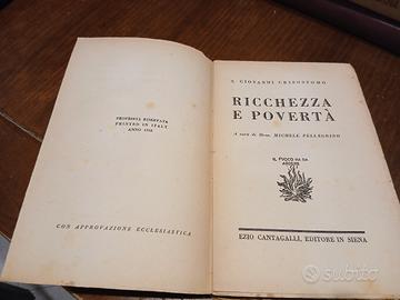 Vendo interessante volume d’epoca dal titolo "Ricchezza e Povertà", raccolta di omelie di San Giovanni Crisostomo, a cura di Mons. Michele Pellegrino. Edizione originale Cantagalli (Siena) del 1938.