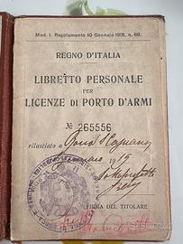 Licenze porto d’armi regno d’italia