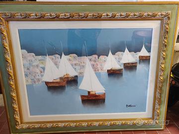 Lido Bettarini - olio su tela titolo Marina con barche, misura 50x70 con cornice rifinita (ingombro totale 75x95)