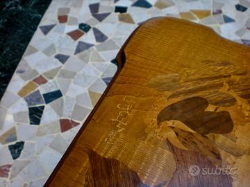 Tavolino da salotto firmato Gallè , in legno di noce biondo finenemte intarsiato con essenze diverse e tinte, di gusto Art Nouveau. Autentico d'epoca, Francia, millenovecento Mobile pubblicato