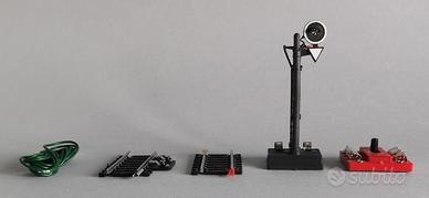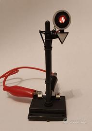 Vendo pezzo da collezione Lima articolo 600022: semaforo a colonna a due luci (rosso/verde) in scala H0 (1:87), compatibile con tutti i tracciati in corrente continua. L'oggetto è nuovo, mai usato e intonso, riposto in un armadio da quando è stato acquistato. Il set è completo di tutto il corredo originale: •Semaforo a colonna (luci rossa/verde). •Deviatore/Pulsantiera art. 3067 di colore rosso per il comando a distanza. •2 Tratti di binari specifici per il collegamento e sezionamento. •Cavetto verde originale per i collegamenti elettrici. •Foglietto illustrativo originale dell'epoca con le istruzioni in 5 lingue. •Scatola originale integra e in ottime condizioni. Stato e condizioni: nuovo, testato per garantirne l'integrità elettrica, è perfettamente funzionante. Come visibile nelle foto, entrambe le luci (rossa e verde) sono chiaramente funzionanti e brillanti. Il passaggio tra i due stati è fluido tramite la pulsantiera originale. Perfetto per chi vuole integrare un plastico vintage con componenti mai estratti dalla confezione o per collezionismo statico di modellismo ferroviario Made in Italy.