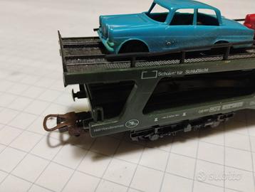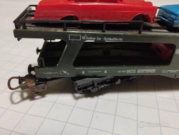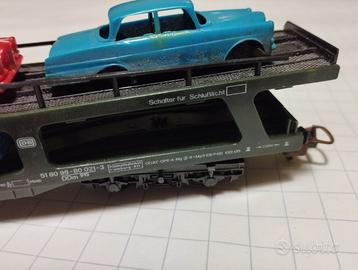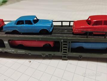 Bisarca Lima LM9054 con sei autovetture originali incollate. Lunghezza 26 cm. Carrelli con braccio lungo per evitare gli incastri e assali a posto. Viaggia molto bene.