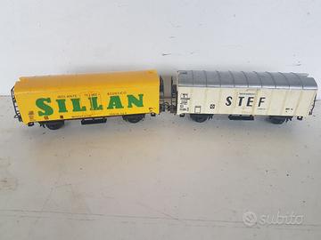 N°6 Carri merci chiusi in Ottime condizioni con ruote ganci e respingenti a posto: - Carro "SILLAN" (VENDUTO) - Carro INTER FRIGO senza scalette - Carro "ASG" - Carro "STEF" (VENDUTO) - Carro "EVIAN" (VENDUTO) - Carro chiuso bagagliaio di coda - Carro FS porte scorrevoli (foto 6) - Carro "Smalco" FLEISCHMANN (foto 6) - Carro Chiuso SBB-CFF (foto 6) PREZZO 8 € cadauno, 3 pezzi 20 € Pagamento e Spedizione, minimo 3 pezzi, gestiti direttamente con pacco tracciabile di Poste da 6/7 €. Anche contatti whatsapp al 3385923596
