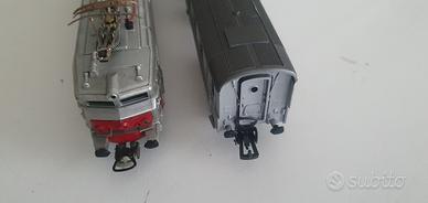 Lima Italia trenini H0 locomotiva Sncf 40101 e carrozza. Locomotiva funzionante con Luci per ogni senso di marcia. Presenti difetti e mancanze visibili dalle foto. Le foto sono parte integrante dell'annuncio.