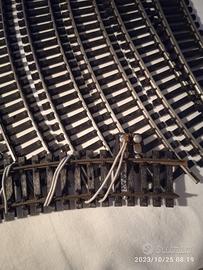 vendo binari 6 rettilinei e 12 curve di cui una con fili carrozza motrice con cavi 2 carri pianale con stanti sponde 1 cisterna gialla Shell 1 regolatore e 1 de miscelatore con cavi prezzo trattabile la motrice ha i cavi da rimontare