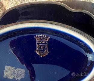 Limoges Porcellana Portagioie Blu Cobalto e Oro