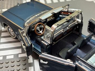 Modello in scala 1:24 della Lincoln Continental X-100 Presidential Car del 1961, la limousine utilizzata dal presidente John F. Kennedy. Serie Presidential Series – Pyrogiochi. Modello molto scenografico con numerosi dettagli: cofano apribile con motore portiere apribili abitacolo dettagliato sedili posteriori presidenziali bandiere USA e presidenziale tetto apribile interni completi Condizioni molto buone come da foto. Presente scatola originale. Ideale per: collezionisti di auto americane appassionati di limousine storiche collezione modelli presidenziali USA