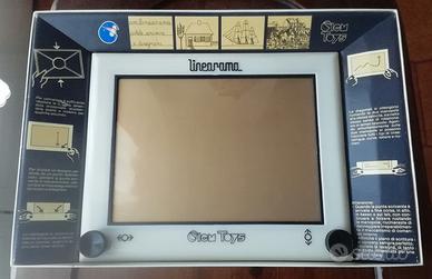In ottime condizioni generali, lavagnetta Linearama della Clem Toys funzionante. Sulla scatola c’è il prezzo scritto a penna e manca la targhetta-istruzioni sulla lavagna.