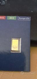 lingottino 1/100 999 24ct oro puro con certificazione 2012 questo tipi di lingotti o monete sono chiamate da investimento non si paga alcuna tassa perché sono state create per le persone che vogliono investire piccole somme di denaro ed hanno un valore aggiunto numismatico quindi i compro oro e gioielleria non hanno licenza devi andare ad un banco metalli ... l oro che contiene può variare da meno 1/2 grammo in su ricordati e importante un lingottino o moneta che ora costa poco dopo può arrivare anche oltre 1000 euro perché sono edizioni limitata.