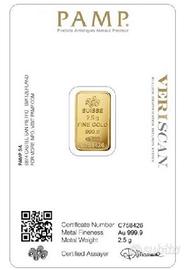 LINGOTTO 2,5gLADY FORTUNA PAMP SUISSE ORO PURO 999
