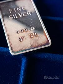 2 lingotti in argento 999 per un totale di 50 grammi. Pezzature rare ! 20 g + 30 g ! (30 grammi e' davvero raro da vedere) vintage,.