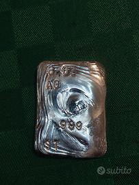 come da titolo vendo lingotto in argento 999 da 3oz fuso artigianalmente. spedisco con assicurata (su richiesta) a carico dell'acquirente. accetto solo bonifico istantaneo, prezzo non trattabile