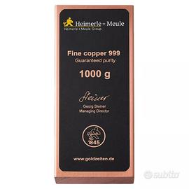 Lingotto di rame puro 1 KG 999,9 - Heimerle e Meule - Sigillato con certificato di Purezza.