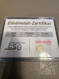 Lingotto or Valcambi 2g Combibar 999.9 certificato