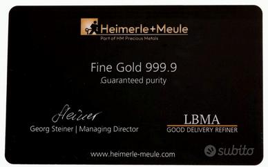 In vendita un esclusivo micro-lingotto di oro zecchino prodotto dalla storica raffineria tedesca Heimerle + Meule, certificata LBMA (London Bullion Market Association).