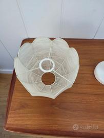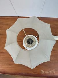Le condizioni della lampada sono ottime in relazione al tempo e ben descritte in foto: funzionante; paralume come nuovo, senza strappi, fori o macchie; base in legno laccata bianco senza crepe; componenti elettriche originali dell'epoca.