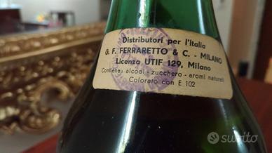 Raro Liquore Vintage Francese da collezione, bottiglia originale, preparato presso l’Abbaye de Cenon (Francia). A base di una miscela di acquaviti (Cognac e Armagnac) con estratti di piante, zucchero e miele.