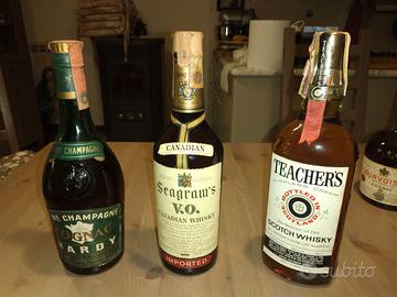 Comunico prezzi solo con contatto telefonico o whatsapp Per messaggi valuto SOLO offerte sia per singoli pezzi, lotti o tutte in blocco Liquori Brandy, Cognac, Whisky, Armagnac anni '60 '70 da collezione - Brandy San Duque D'Albe - Zoilo Ruiz-Mateos - Cognac V.S.O.P. Monnet J.G. Monnet & Co. - Cognac Fine Champagne Hardy - Cognac Luxe Courvoisier Fine Champagne Hardy - Cognac Boulestin Fine Champagne - Armagnac Vieux Duc de Maravat - Armagnac V.S.O.P. Duc de Maravat - Canadian Whisky Seagram's (Distillato in Canada, invecchiato 6 anni) - Teacher’s Scotch Whisky Scozzese